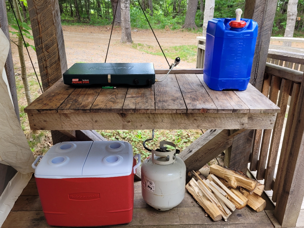 Yes. Each site includes a simple cooking setup with a propane stove and basic cookware, as well as a cooler with ice packs.
